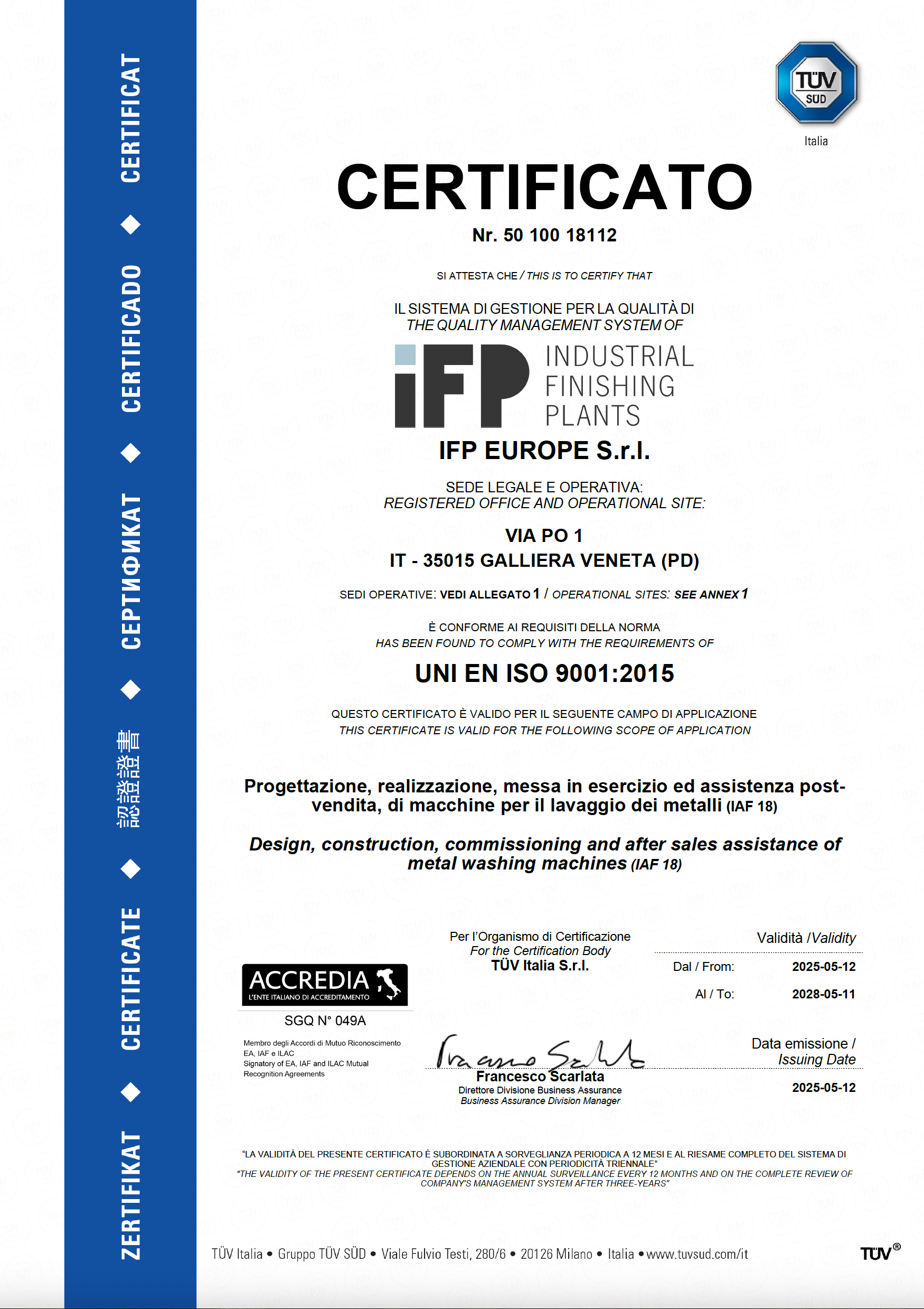 IFP Europe has implemented a quality management system compliant with the standard, demonstrating its commitment to continuous process improvement and customer satisfaction.