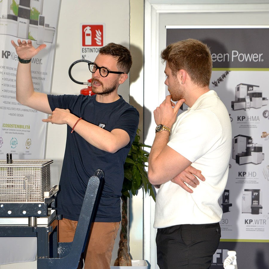In tre giorni abbiamo fatto decine di test di lavaggio. I nostri clienti hanno portato i loro componenti e hanno potuto vedere molto da vicino i cambiamenti, il risultato di un lavaggio, i meccanismi di azione, il grado di pulizia, i tempi e non ultima la linea estetica. Hanno potuto apprezzarne il valore.